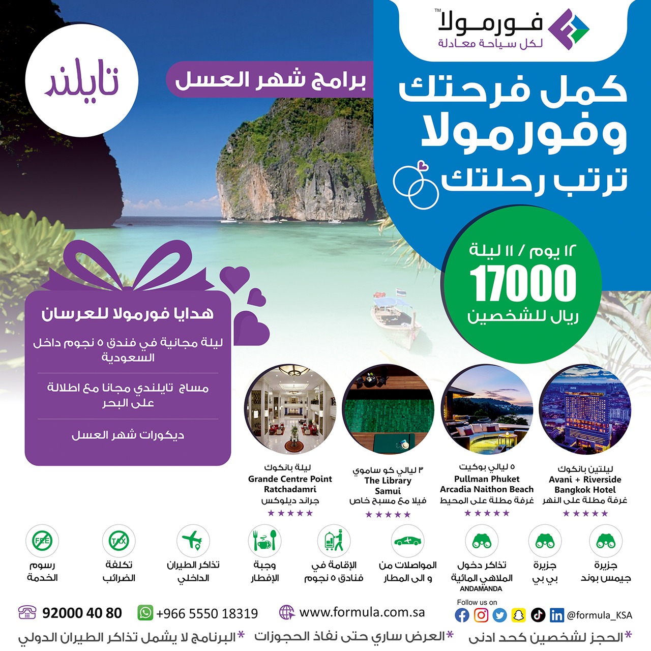 احصل على هدايا فورمولا للعرسان عند حجز إحدى برامج شهر العسل